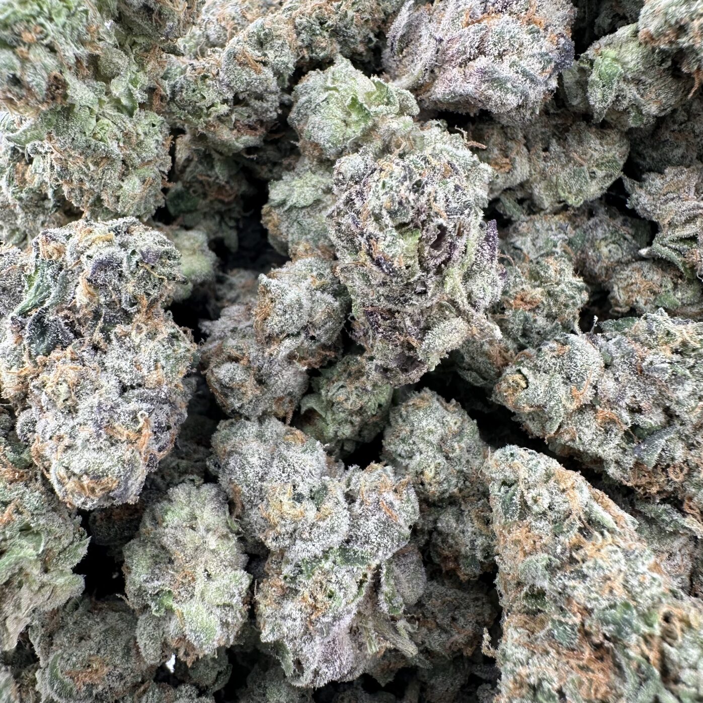 Kush Mint is an evenly balanced hybrid strain (50% indica/50% sativa) created through a potent cross of the classic Bubba Kush X Animal Mints strains. Perfect for any fan of a super minty flavor, Kush Mint brings on well-balanced effects that hit both mind and body with a high level of potency thanks to its super heavy 22-24% average THC level. Kush Mint has a fabulously sharp minty taste with hints of fresh coffee and earthy cookies to it. The aroma is of earthy sweet woods and rich spicy coffee with a heavy kick of mint. The Kush Mint high isn’t quite as eye-opening as the flavor, with relaxing effects that will have you kicking back and pretty sleepy if you’re not careful. It starts with a warming tingle in the spine, filling you with a sense of deep permeating relaxation that ebbs and flows outwards through your limbs until you are totally calm in both mind and body. With these effects and its high level of potency, Kush Mint is said to be perfect for treating conditions such as chronic pain, depression, chronic fatigue and nausea or appetite loss. This bud has fluffy oversized piecey forest green nugs with rich amber undertones, matching hairs and a coating of sparkling clear crystal trichomes.